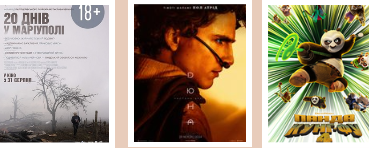 20 днів у Маріуполі, Дюна 4, Панда Кунг-Фу та Кіт&Пес: які фільми показують кінотеатри Дніпра