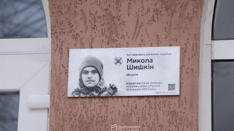 Сьогодні у Дніпрі на стіні ліцею № 36 встановили пам’ятну табличку загиблому воїну Миколі Шишкіну. На відкриття прийшли його рідні, знайомі, однокласники та вчителі.