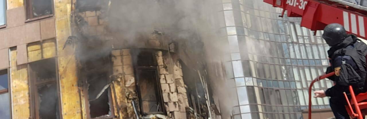 В Основ’янському районі спалахнула офісна споруда — дах згорів дотла, а потужною вибуховою хвилею винесло шибки у храмі поряд.