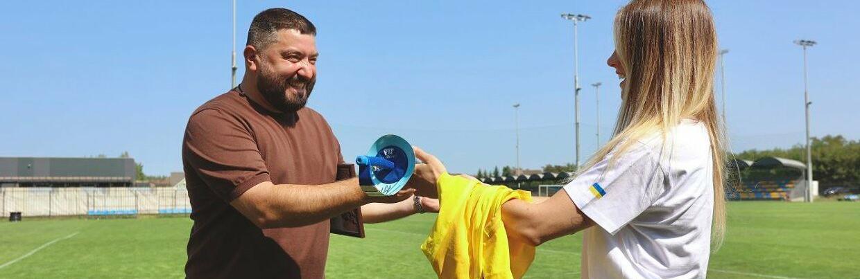 На тренувальну базу «Металіста 1925» на заняття команд завітали колишній зірковий телеведучий, а нині громадський діяч Сергій Притула та шестиразова олімпійська медалістка, чемпіонка Олімпіад у Пекіні та Парижі — Ольга Харлан. Вони привезли медаленосну шаблю спортсменки та передали «Металісту 1925». Олімпійська чемпіонка зізналася: під час аукціону не змогла стримати емоцій.