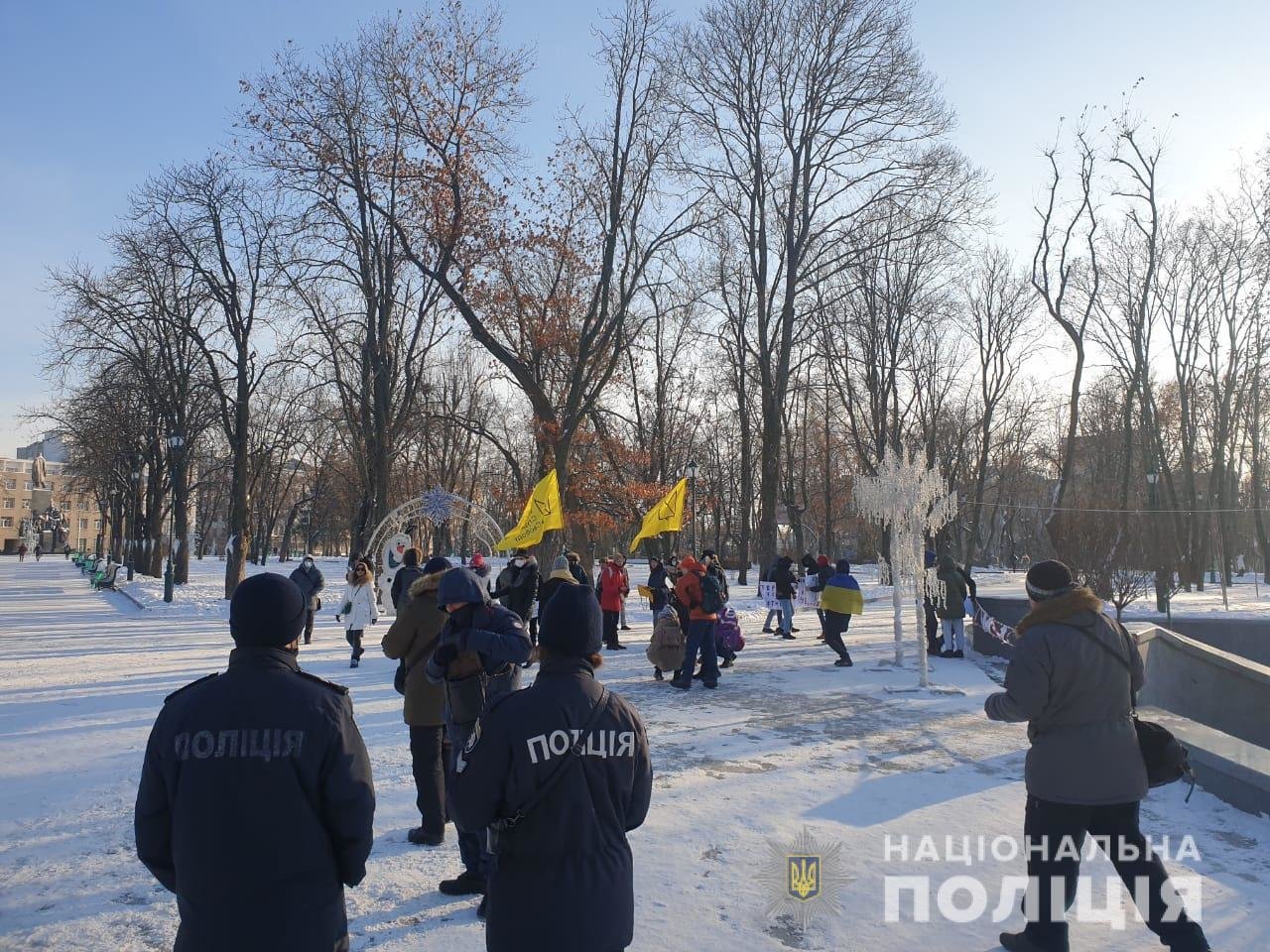 17 января около 40 горожан собрались на акцию протеста под лозунгом «Охрана отмена» против избиения охранниками посетителей сада Шевченко. Об этом сообщили в пресс-службе Национальной полиции в Харьковской области.