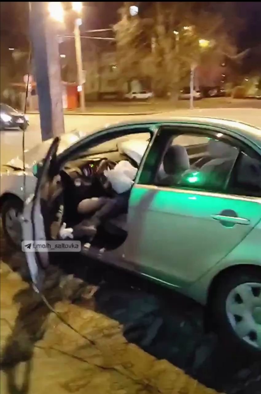 Рано утром на Салтовке водитель авто врезался в электростолб.