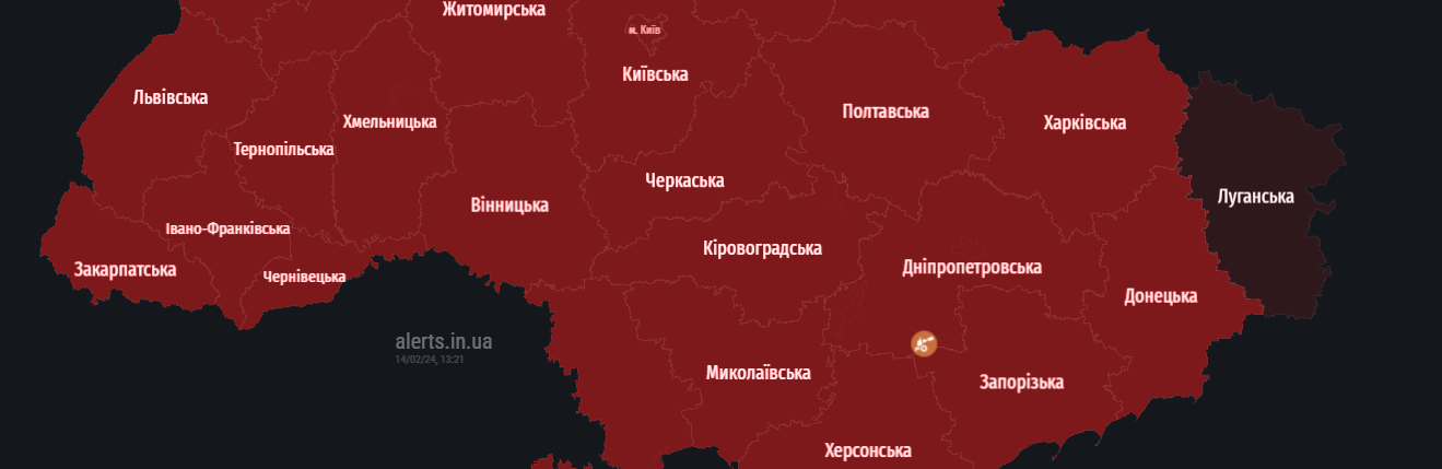 В усіх областях України оголосили повітряну тривогу. Попереджають про зліт російського винищувача МіГ-31К, який є носієм ракет «Кинджал».