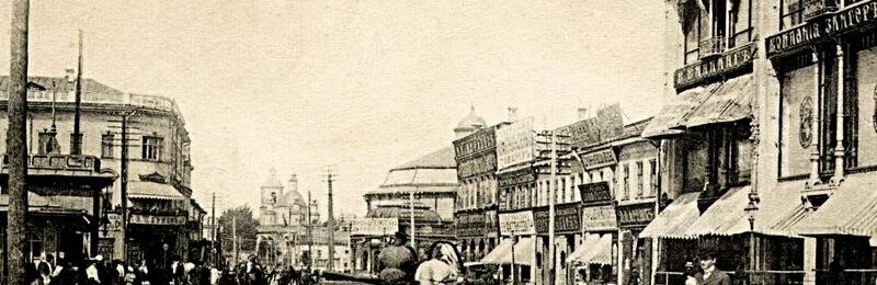 Уже в XIX веке ранее скромную Торговую площадь было не узнать – вокруг нее начали расти каменные дома на несколько этажей. Одним из первых стало здание на углу Плетневского переулка – дом купца Ломакина, архитектором которого стал Петр Ярославский. В начале века в этом доме несколько раз останавливался император Александр I. Уже в 1870-м году двухэтажное здание приобрел Купеческий банк. В помещениях временно располагалась контора и Общественная библиотека. В начале ХХ века каменное здание признали аварийным и снесли, построив современное помещение в стиле модерн по проекту известных архитекторов Николая Васильева и Александра Ржепишевского. При возведении дома впервые в Харькове использовали железобетонные каркасные конструкции. На первом этаже помещения находились магазины и банк, на втором и третьем – конторы, а на самых верхних – известная в Харькове гостиница «Астория». В 1919 году на ее месте появился Всеукраинский Революционный Комитет.
