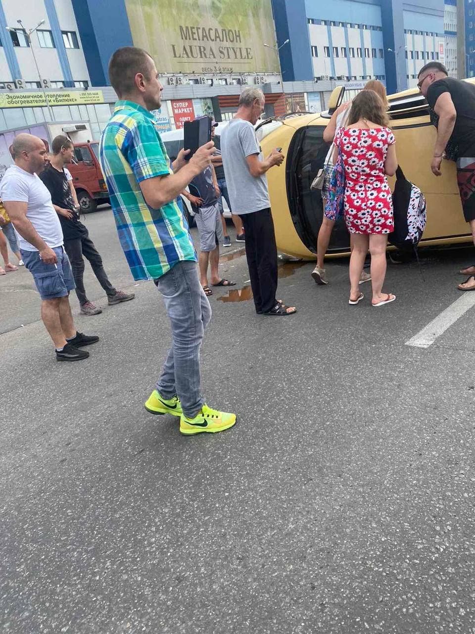 На одной из харьковских улиц произошла тройная авария с перевернутым авто.