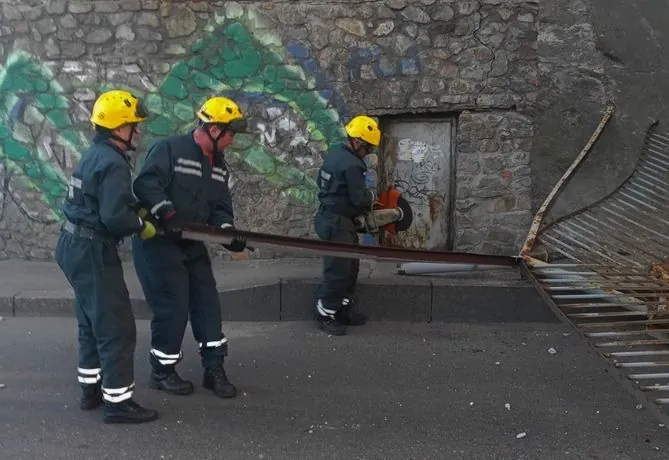 Специалисты с помощью специнструментов демонтировали металлические конструкции и распиливали их, чтобы убрать с дороги.