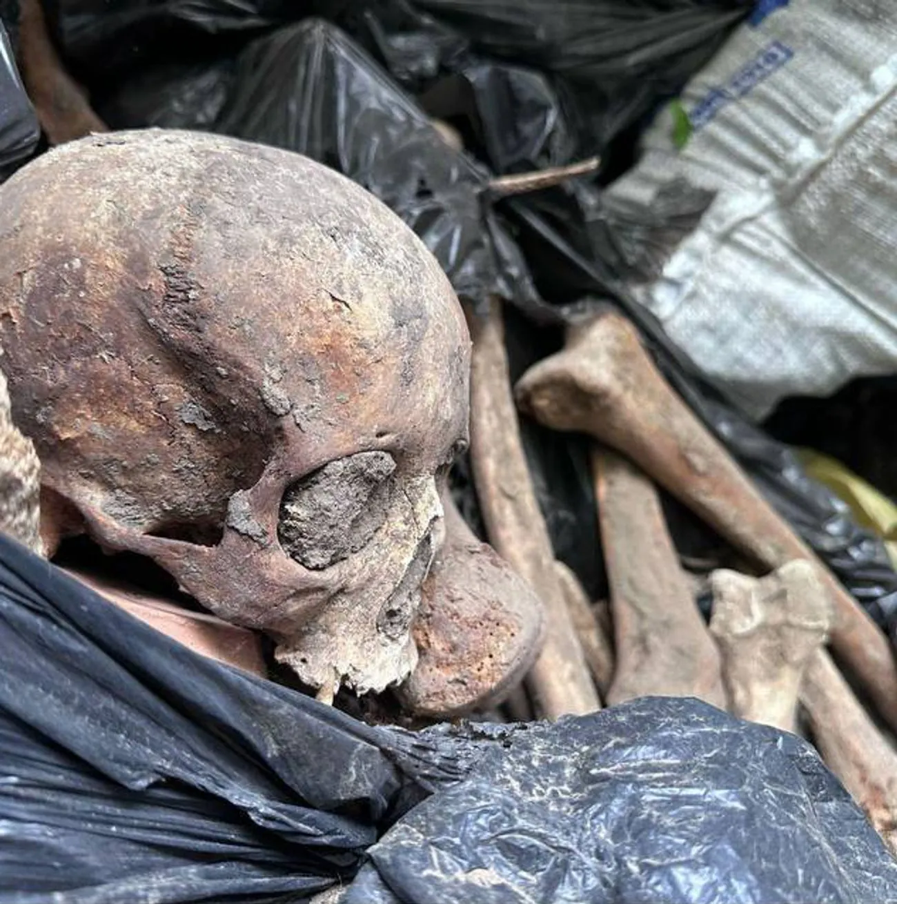 В Киеве 29 апреля возле одного из лицеев обнаружили свалку, полную черепов и костей. Об этом стало известно из видео, которое активно распространялось в соцсетях. Впоследствии полиция Киева заявила, что найденные в мусорнике на Подоле вблизи столичного лицея черепа и кости в черных пакетах – не криминального происхождения.
