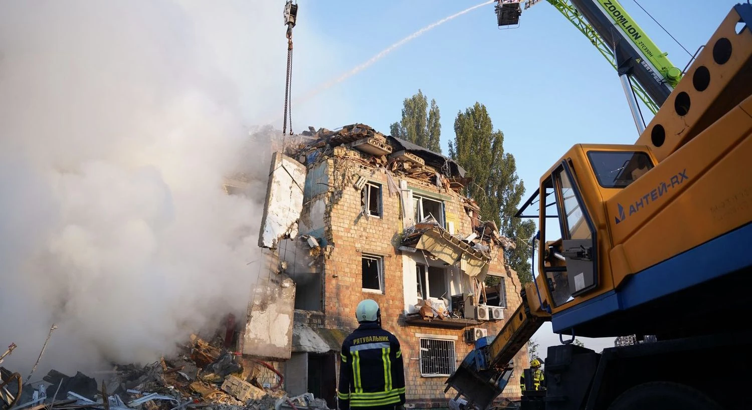 19 погибших. На месте атаки в Дарницком районе продолжаются поисково-спасательные работы. Под завалами, по информации служб, еще может находиться до 10 человек