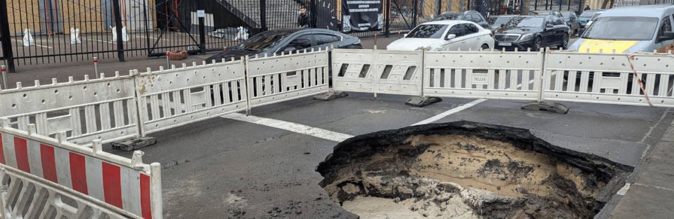 У середу, 10 грудня, на перехресті Нижнього Валу та Почайнинської у Києві раптово провалився асфальт. На дорозі з’явилася значна вирва, яка фактично паралізувала частину руху в центральній частині міста.