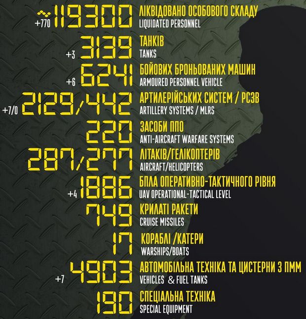 личного состава — около 119 300 человек (+770 за прошедшие сутки);