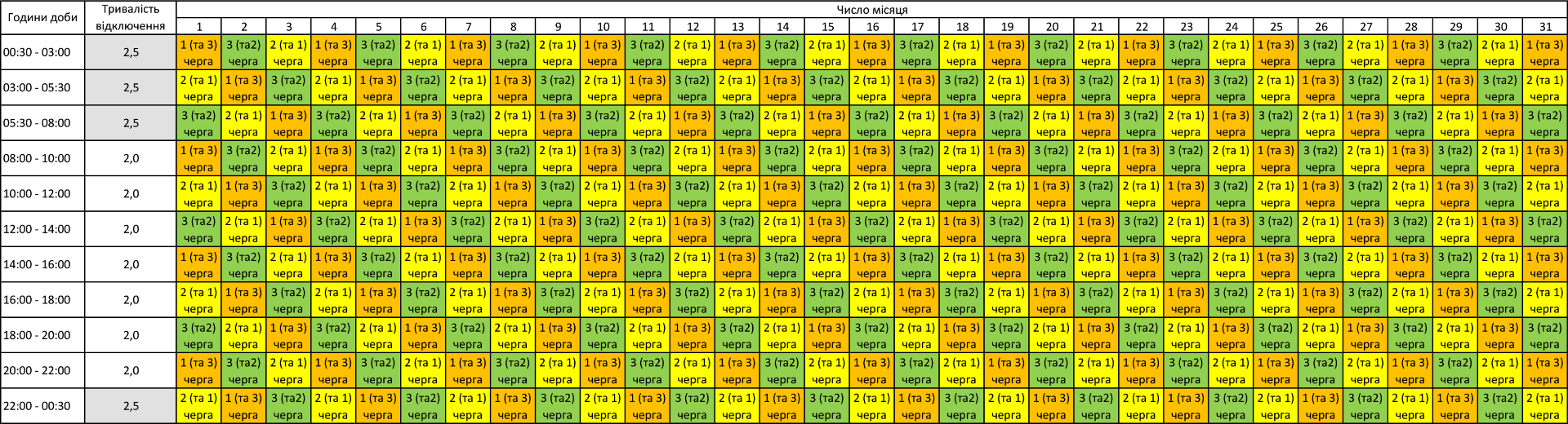 Переглянути графік вимкнень по чергах ГПВ у вигляді PDF-файлу можна за посиланням або у табличці нижче: