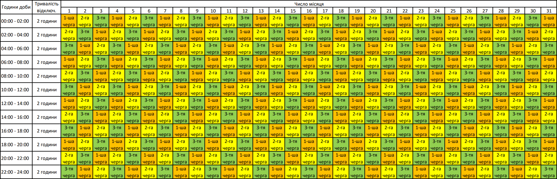 Переглянути графік вимкнень по чергах ГПВ у вигляді PDF-файлу можна за посиланням на сайті «Полтаваобленерго» або у табличці нижче: