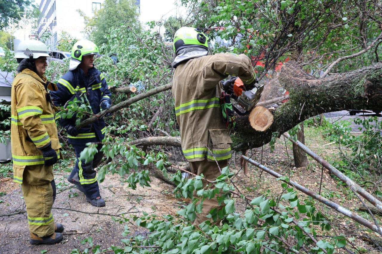 За допомогою спецобладнання рятувальники розпиляли та прибрали повалені дерева. На місці працювала одна бригада ДСНС. На щастя, люди не постраждали.