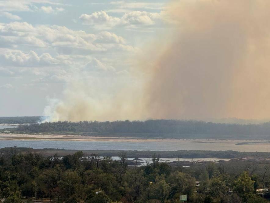 Рятувальники другу добу поспіль ліквідовують масштабну пожежу на острові Хортиця