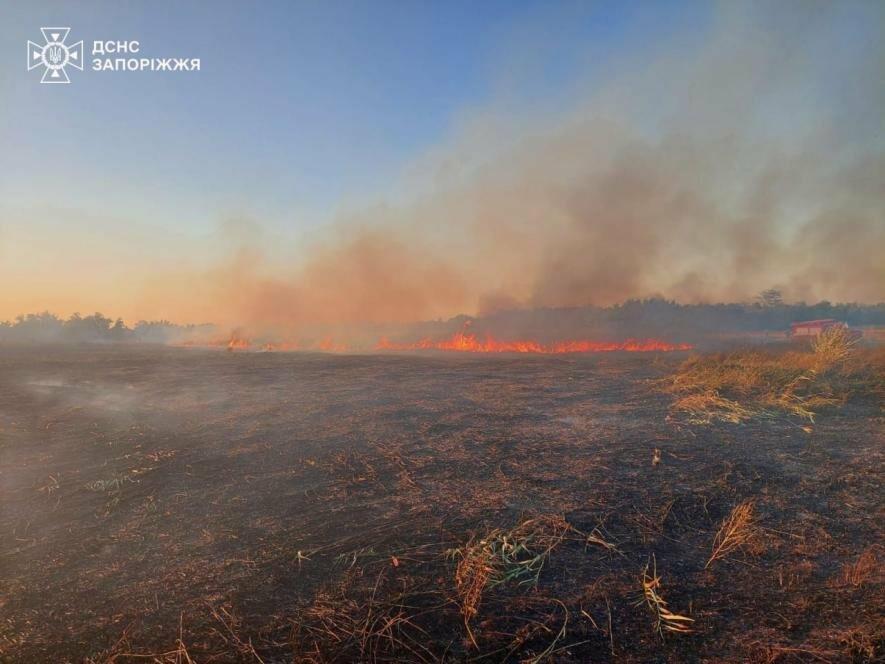 В населеному пункті Запорізького району вчора виникла масштабна пожежа. Горіла суха трава, вогнем знищено площу 2,5 га.