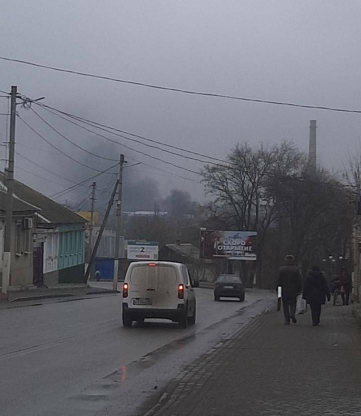 З посиланням на інформацію місцевих мешканців він каже, що густий дим валив у нижній частині міста за центральним ринком у районі захопленого окупантами заводу «Рефма», де ворог розмістив свою військову базу.